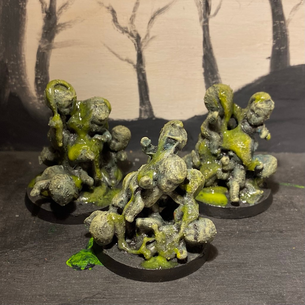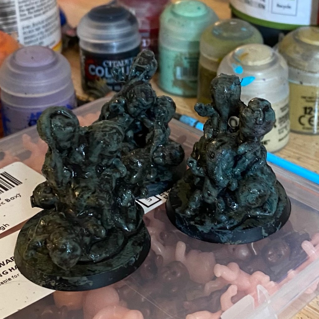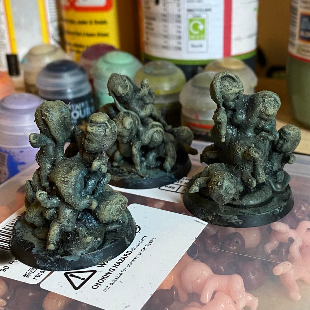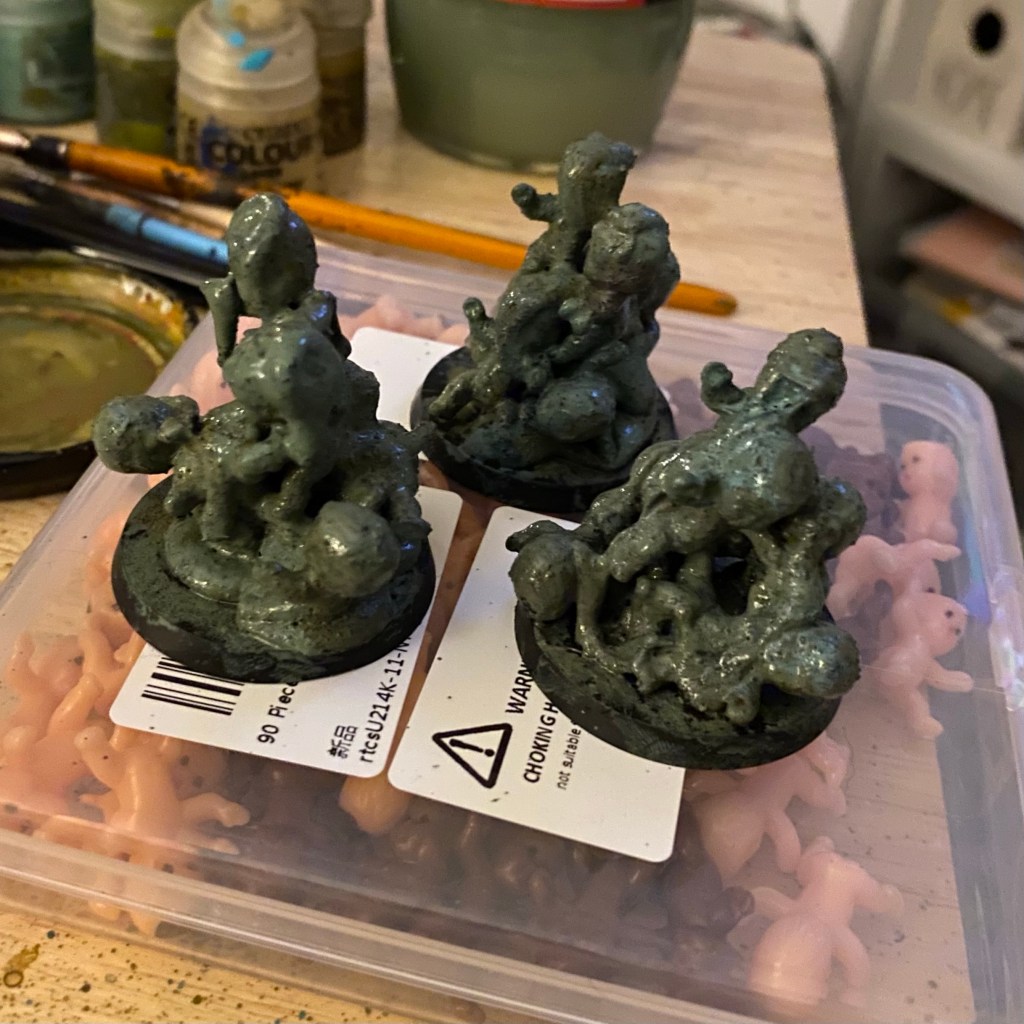 A day later I had 90 for £5.99. I was hoping they’d be large enough to play the part of Plague Bearers, however they were about half the size I needed (although two in a trench coat might do). So I settled on using them as Nurglings.