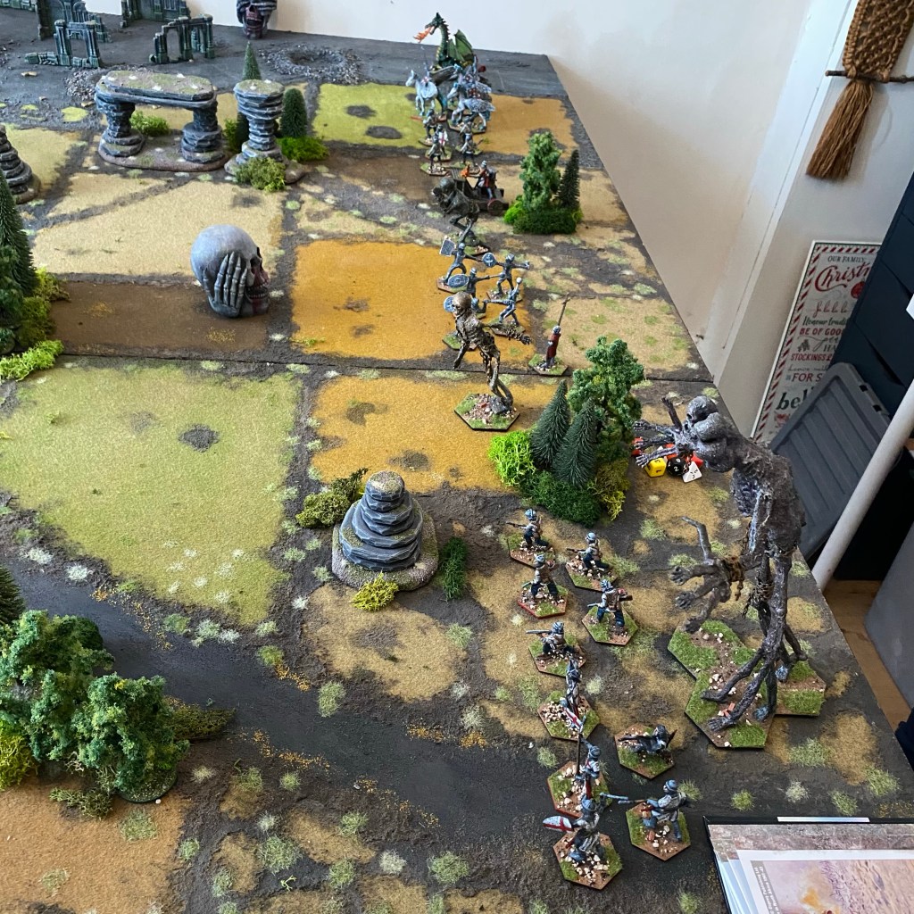 At the end of turn 1 Hell had emerged on the right flank and the Templars shifted across to counter.