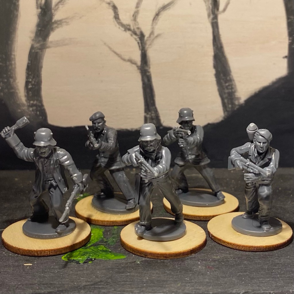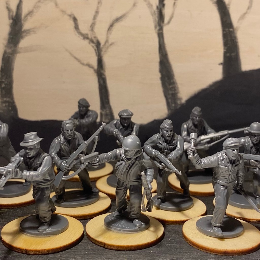 I had some leftover parts from Wargames Atlantic’s WW1 Germans and WW2 Italians so that helped with the shortcomings of the Partisan box. The shortcoming being the lack of rifles, 2 per sprue meaning you can only equip half of the men with rifles.