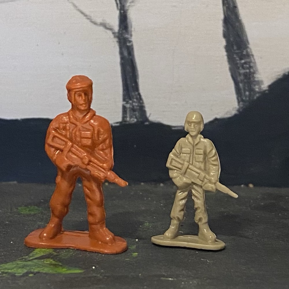 I feel like its a stretch to say that these figs remind me of EC War comics like “Corpse on the Imjin,” but cartoons are abstractions of the real, and so are toys generally. These are really terrific though. How serious do you think they’ll be on the other side of your paint table?