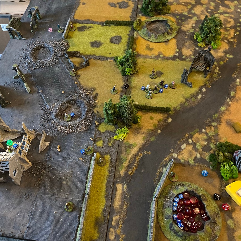 With the dice vanishing, the action was turned to the goodies right and the baddies left flanks.
