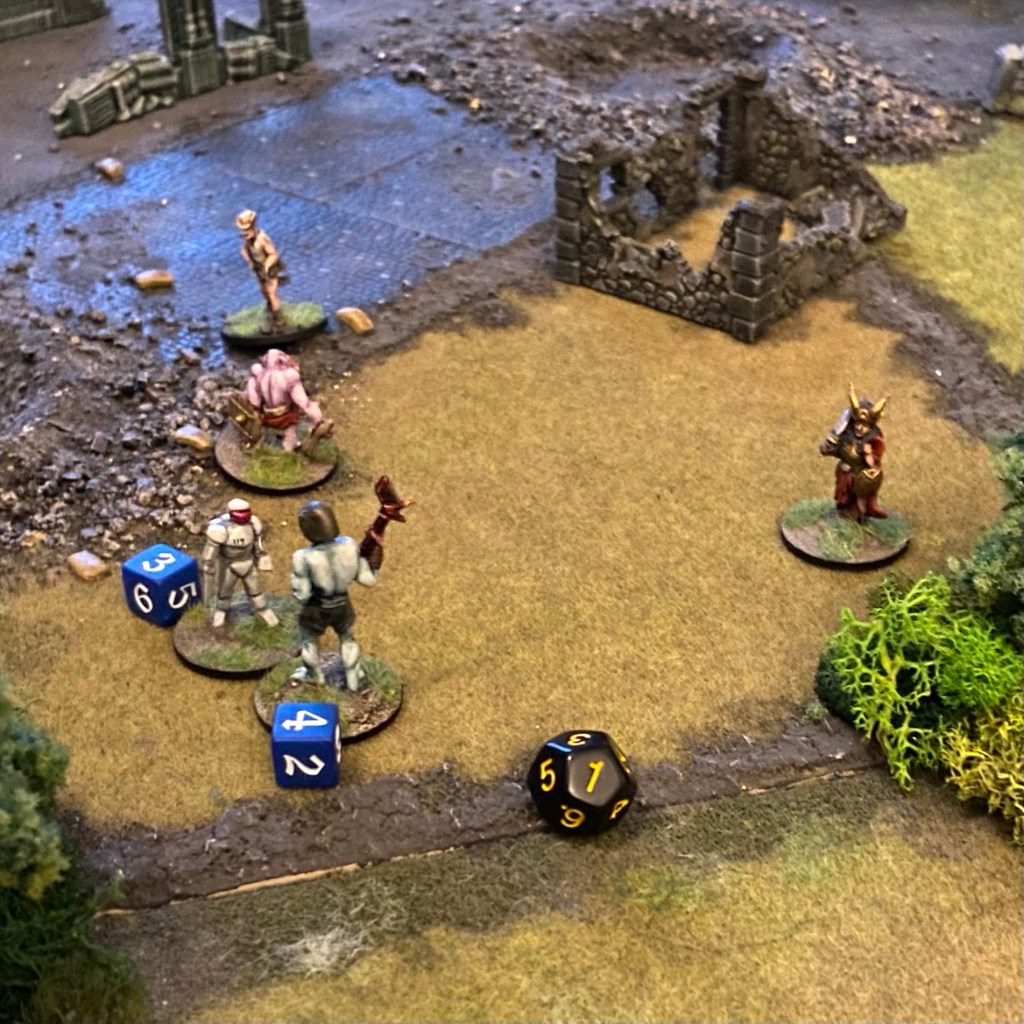The game is played on a 2’x2’ board. Players should have the same number of figures (from 3-10). Figures have three stats, ‘Manoeuvre’, ‘Combat’, and ‘Stamina’. Stats can be any value from 1-5. A figure also had a class – Fighter, Skirmisher or Shooter.