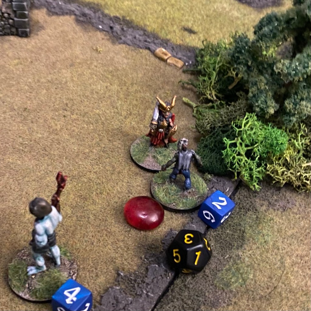 All that remained from the Orc’s perspective was a centre swarming with bad guys, with only the Amazon and the Valkyrie holding up the tidal wave, and Sledge and Sir Gildain holding a die against the Maneater in the distance.