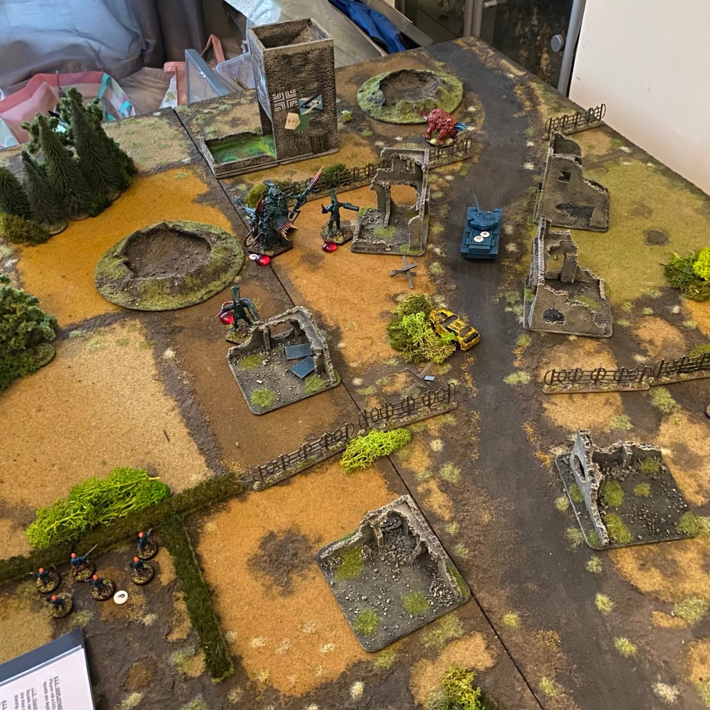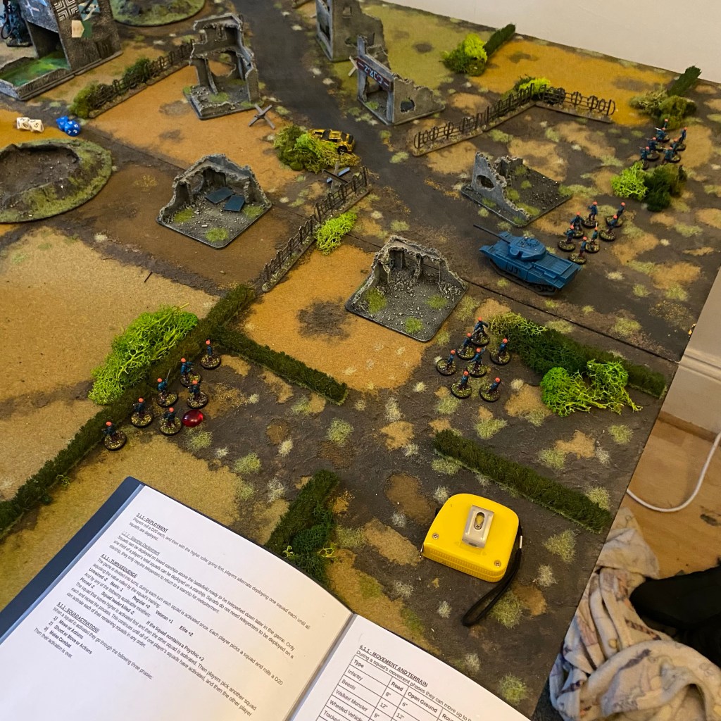 All in all the game played out surprisingly quickly, even for an attempted simulation. The rules previously were slowed down a lot by my activation system. You rolled a D20 for each unit, added modifiers and then units activated in order from high to low. as you can imagine with a lot of units this is a long process. This time round however I picked a unit for each side, rolled for them adding any relevant modifiers, and then the higher rolling unit could chose to go first or second out of the two units. Then once both units have activated you move onto the next two. I’m looking forward to more playtesting and more Deathzap in the new year!
