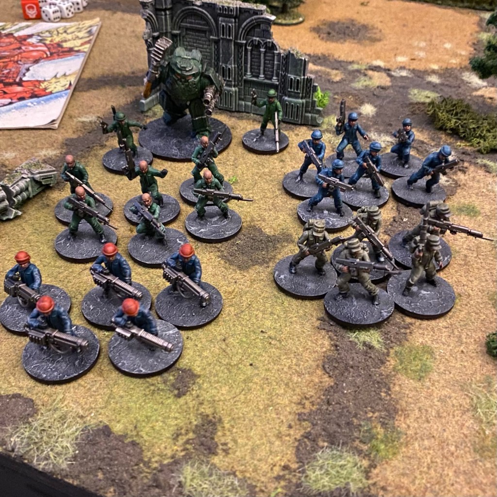 I had the same Battle Form problem that I had in my previous game. Having to cook up enough fire power for a 1 in 6 chance of taking it out is a problem. The game really needs rules for anti armour, or more like One Page Rules I’ll play the game with adjusted shooting, so you roll your hits, roll your saves and then Strength will work like wounds.