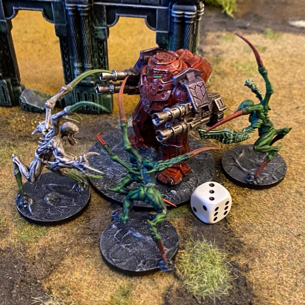 Even with the Pteravore being unlucky with the dice, things felt almost impossible for the Karn. Other than my home brewed Pteramites, the Razors and Screamers that make up the backbone of the force all have Strength 3. So, how many dice do you need to roll to have a decent chance of getting three hits, where you score a hit on a 4+ and 6s explode? 5 or 6 dice is your best bet, but the Razor or Screamer still makes a save one third of the time even if you get those hits.