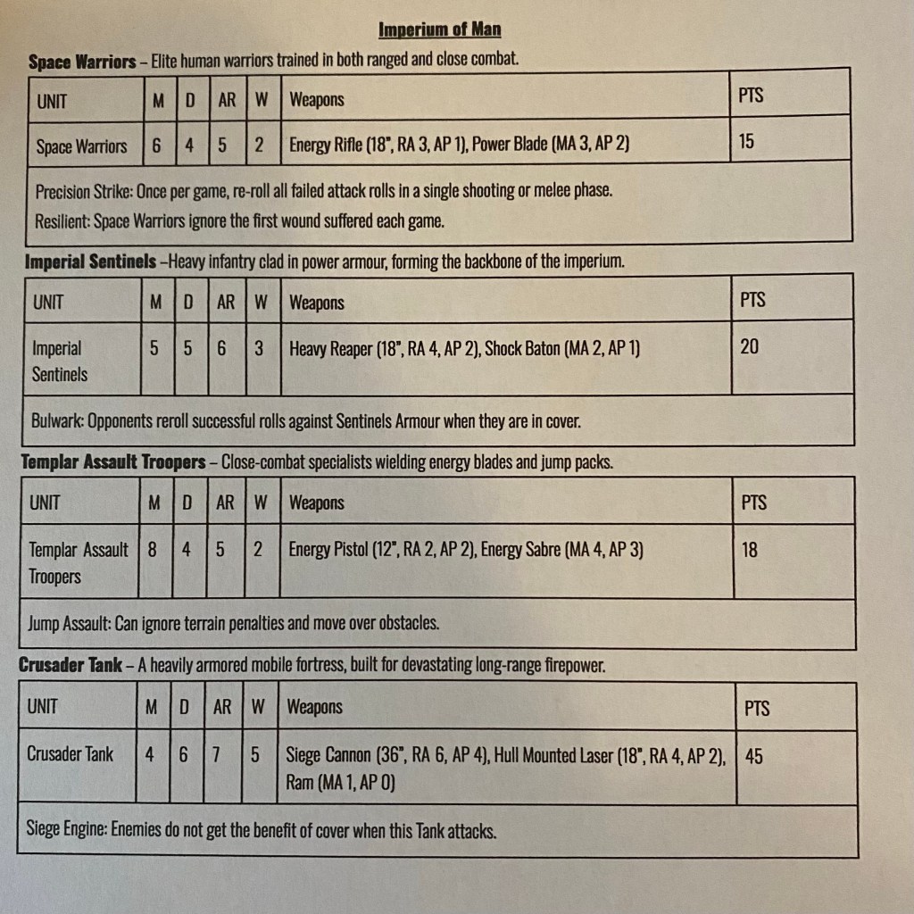 Of course it’s difficult to tell after only playing a single game, however I did start to think that the Imperium may be a little under powered. The Walkers were a particularly tough unit for them to deal with.