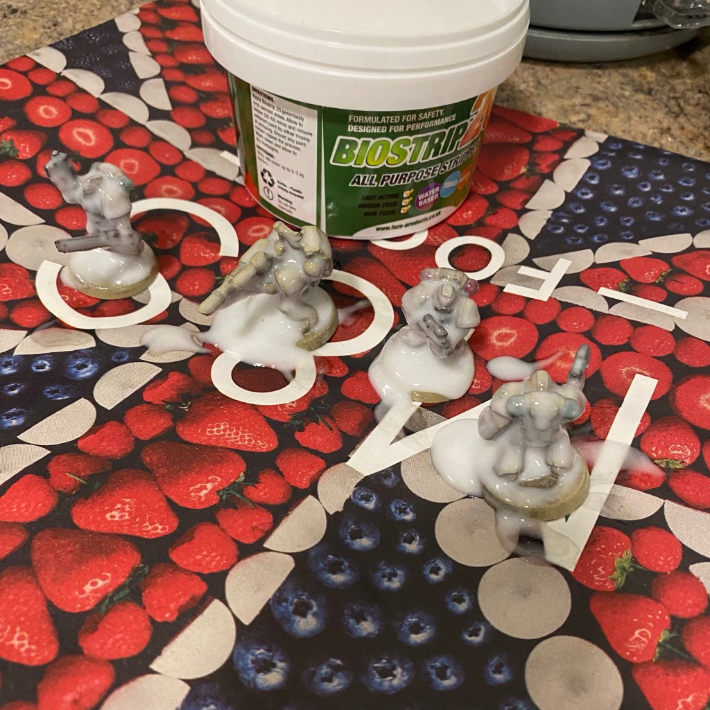 The Biostrip itself isn’t too stinky, especially if you’ve stripped with Dettol before, and it feels like your dipping the models in a tub of PVA. once their dipped you let them sit for an hour, which is rather fast in this game.