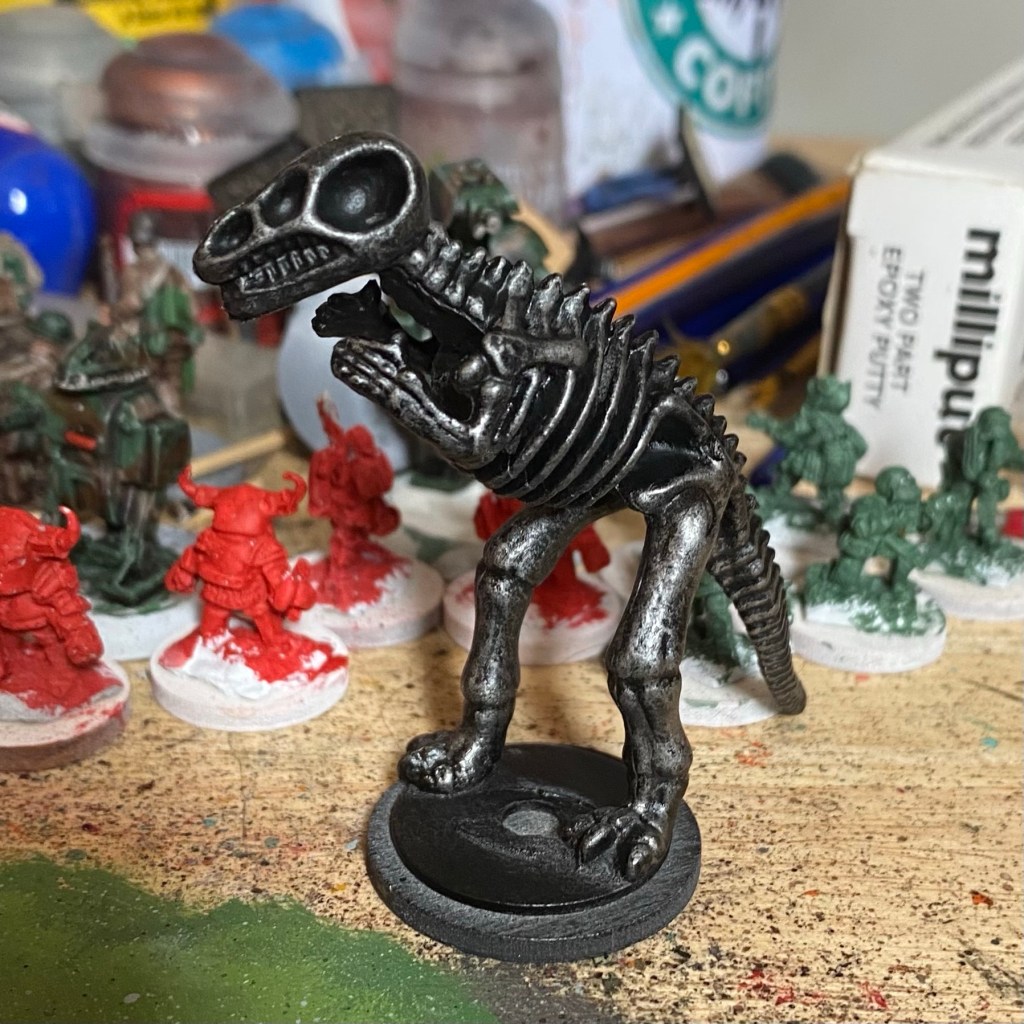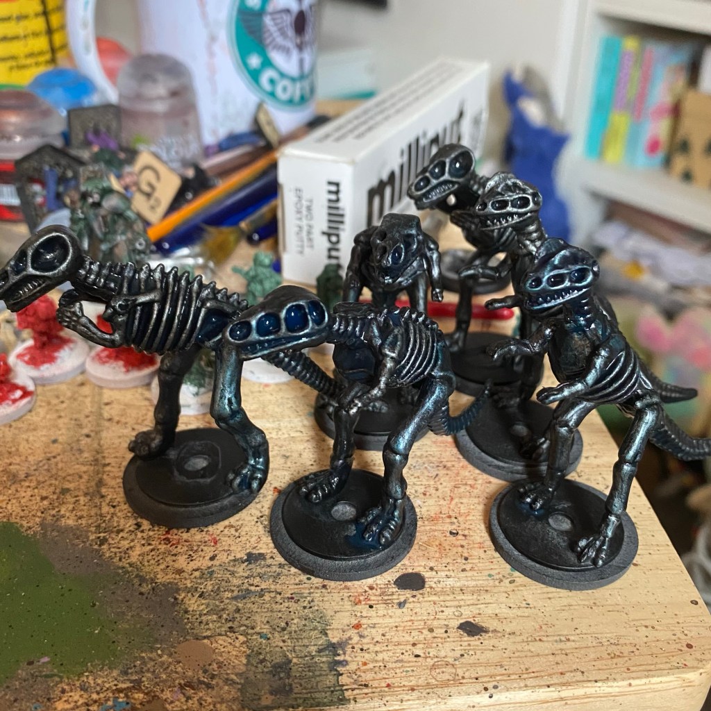 Then I primed them white and sprayed them all over with black (since I don’t have a black primer to hand). From there everything got a silver drybrush.