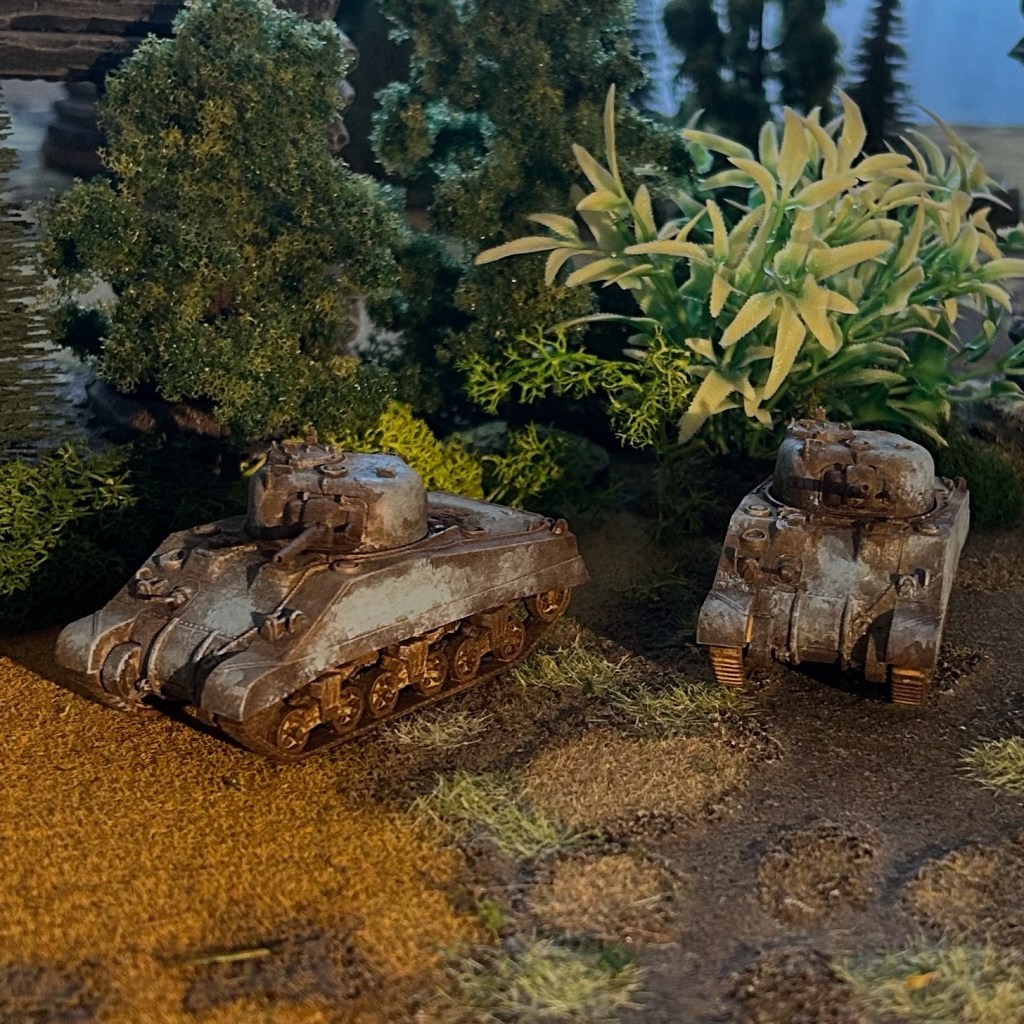 The Shermans have been my latest addition, I looked up reference images of old rusty tanks to get inspiration and used the same colour palette as the figures to keep it all tied together.