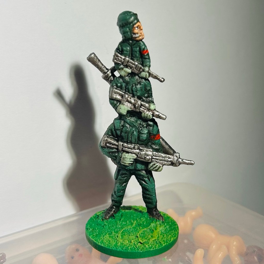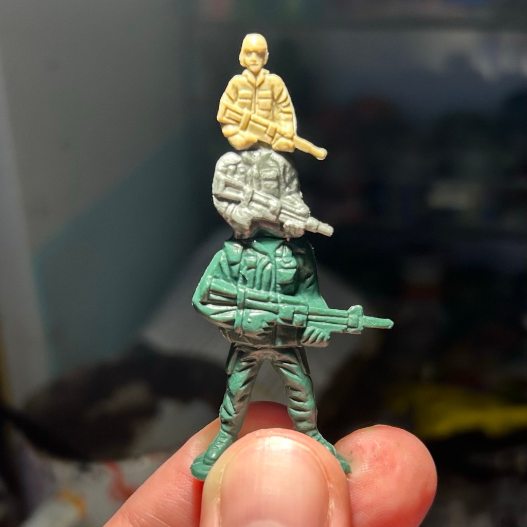 In the mad world of finding things to replace the heads of army men with, at some point I landed on the idea of just smaller army men. I previously showed off my initial Mantaur: