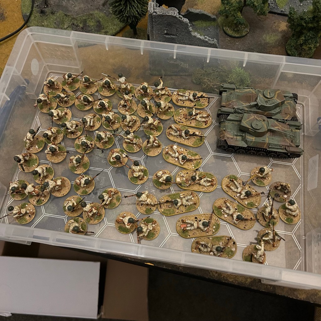 My thoughts so far include mainly 10 man squads, all rifles to save on points, and maxing out the infantry squads in your platoons. Lots of chaff, infiltrating suicide guys to keep the enemy occupied as you approach, crucially making sure your guys don’t get shot up. Maybe tanks to operate as a sort of mobile cover too.