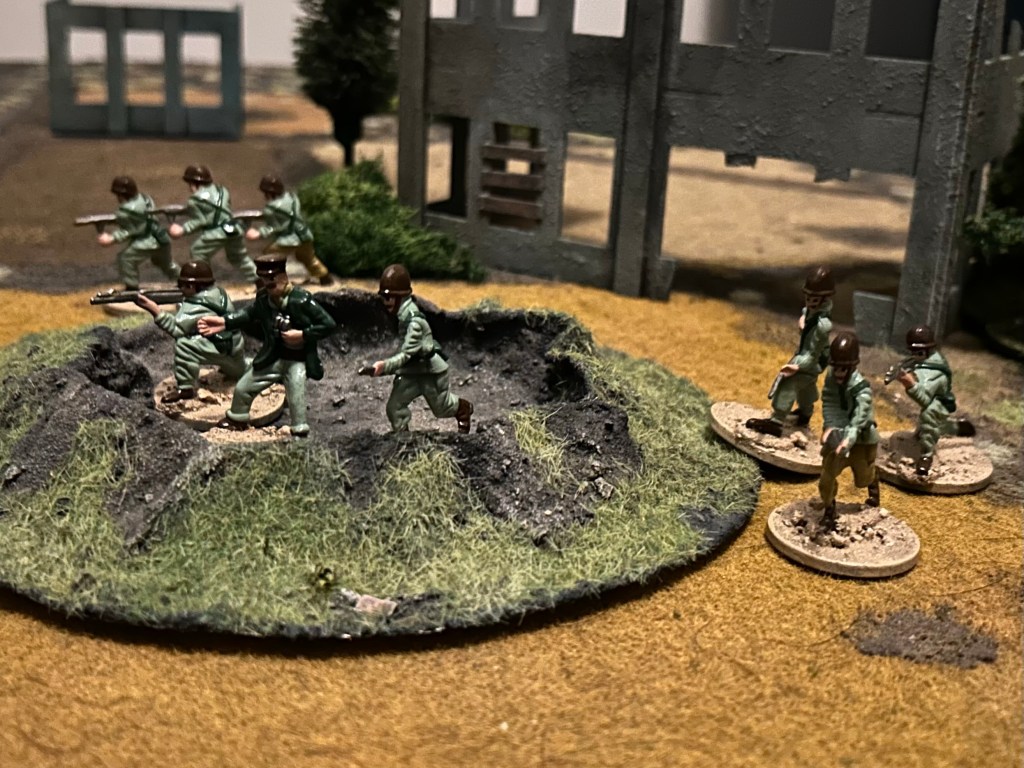 Players roll off to determine who has the first activation during a turn. During a player’s activation they can spend activation tokens to activate one unit. When a unit activates roll a die (civilians/militia D4, Regulars D6, Veterans D8, Elite D10) this is the number of action points (AP) the unit gets. If the unit is the Commander or they are within 6” of their Commander add 1 to the roll.